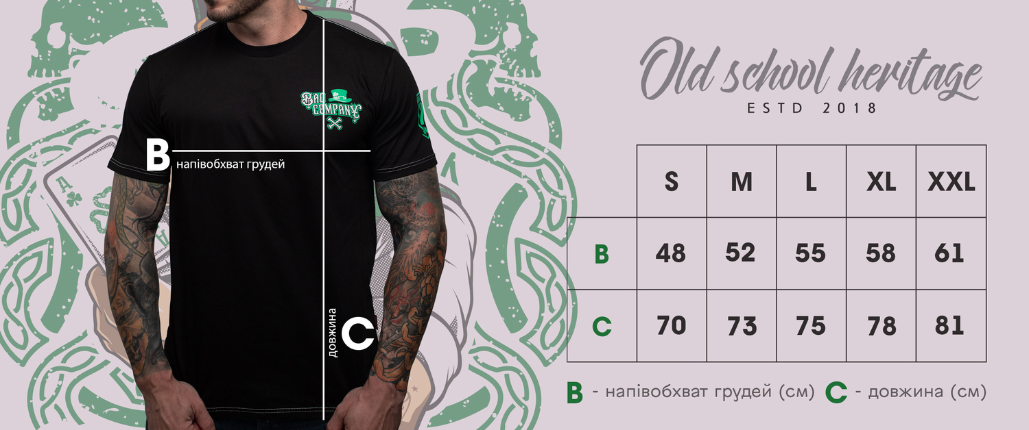 На центральній частині принта зображено зухвалого леприкона з гральною картою в руці та трубкою в зубах, над яким красується напис Bad Company, а знизу малюнок доповнюється оригінальною назвою — Shamrock Shark. На лівому рукаві розміщено число «23» і трилисник, що вже став символом удачі бренду. На грудях — лаконічна композиція із написом Bad Company, у поєднанні з культовим картузом Bowler Hat, чудово доповнює концепцію стилю та характеру.